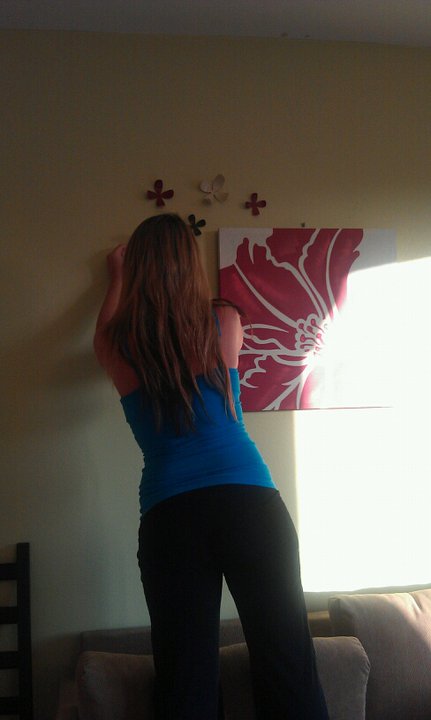 And Ashley encouraged me to finally get some decorations up (red flower painting from Pier 1)